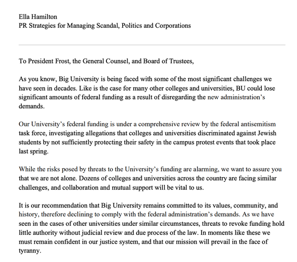 April 11 2025 Big University Public Relations Crisis Management (Mock Crisis PR Memo) Prepared for Crisis PR Course